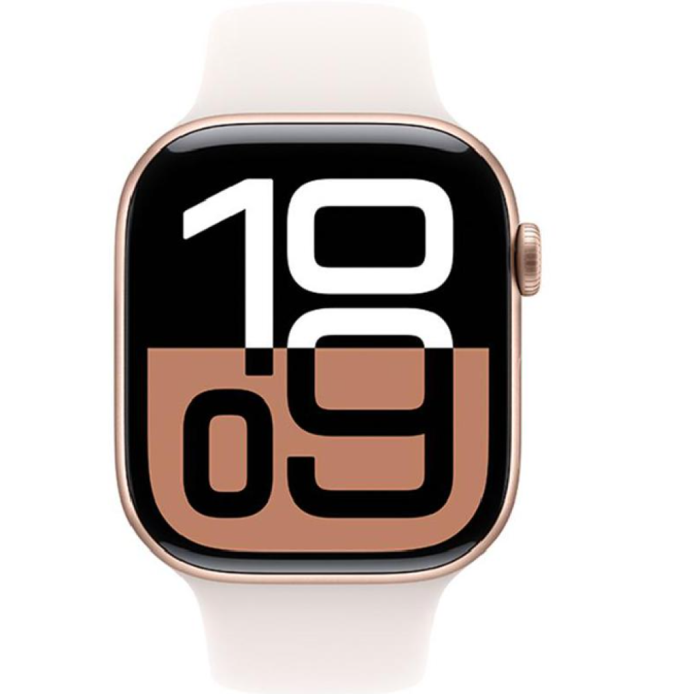 اكسري حواجز الأناقة مع ساعة Apple Watch Series 10. شاشة أكبر مع مساحة شاشة أكبر وتصميم أنحف وأخف وزنًا. احصل على ميزات اللياقة البدنية والصحة المتقدمة، بالإضافة إلى شحن أسرع. ارتدي هذه الساعة لتتألقي بأناقة متميزة وتضيفي لمسة من الفخامة إلى كل إطلالة.