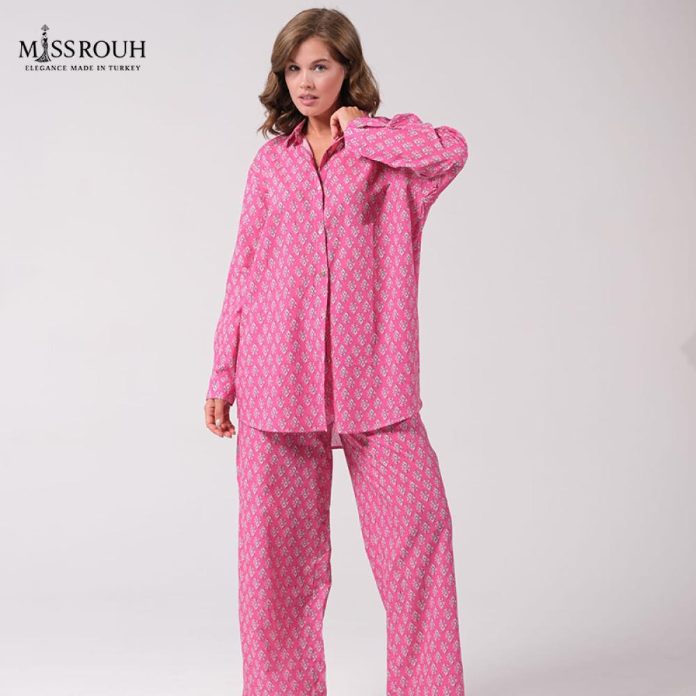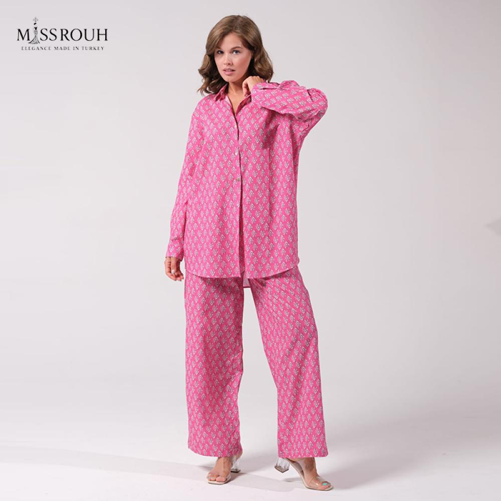 سروال بيجاما مع طبعة ورد صغيرة