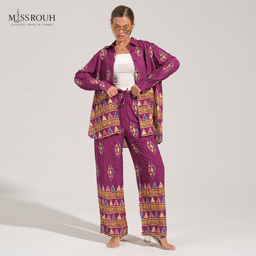 إطلالة ملكية جذابة مع طقم "رويال بيربل"، الذي يتميز بلونه البنفسجي الغني ونقوشه الهندسية المستوحاة من الفن القبائلي. تصميم عصري يعكس الأناقة والتميز، مثالي للإطلالات الكاجوال الأنيقة.