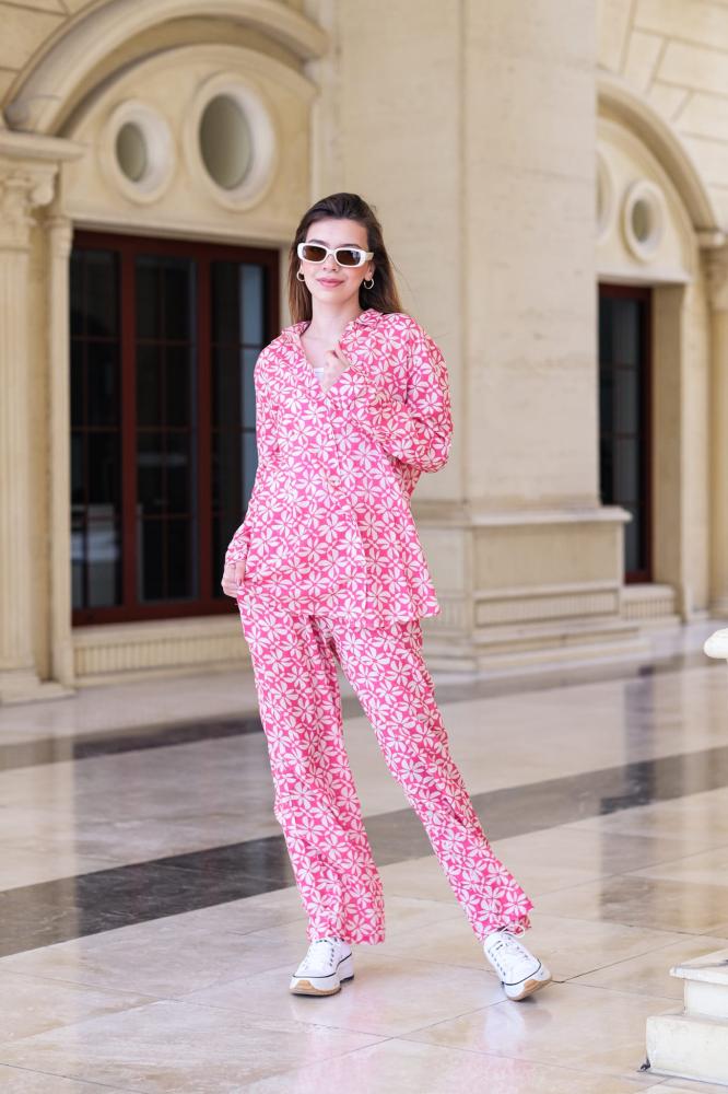 استمتعي بإطلالة أنثوية ناعمة مع طقم "بلوسوم روز" المصمم ليجمع بين الأناقة والراحة. يتميز بنقوش زهرية هندسية باللون الوردي الجذاب، ليمنحك لمسة مفعمة بالحيوية والأنوثة.