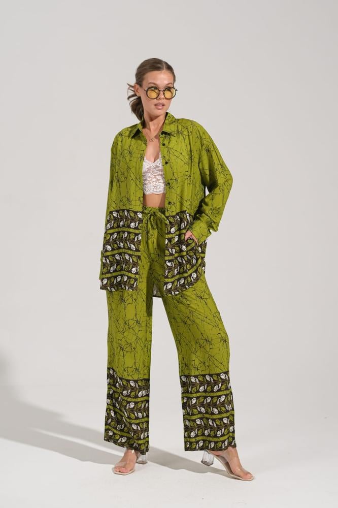 تألقي بأسلوب أنيق وجريء مع طقم "أوليف جرين"، الذي يجمع بين اللون الأخضر الزيتوني العصري ونقوش الرخام الفريدة مع تفاصيل أوراق الشجر التي تضفي لمسة طبيعية أنيقة.