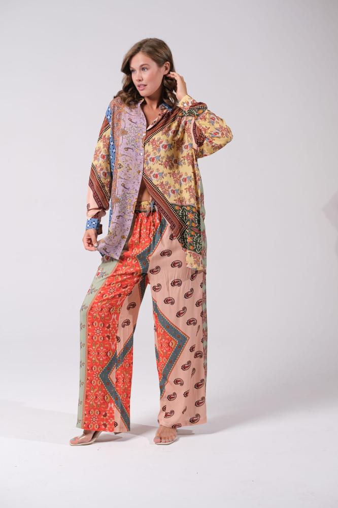 اجعلي إطلالتك تنطق بالأناقة العصرية مع بيجامة "إيـثنـك بوهو" التي تجمع بين الستايل البوهيمي الجذاب والراحة المطلقة. تصميم مميز باللون عصرية المزين بنقوش فنية على الأطراف، ليعكس لمسة من الفخامة والتميز.