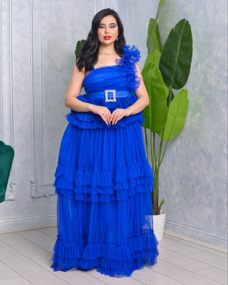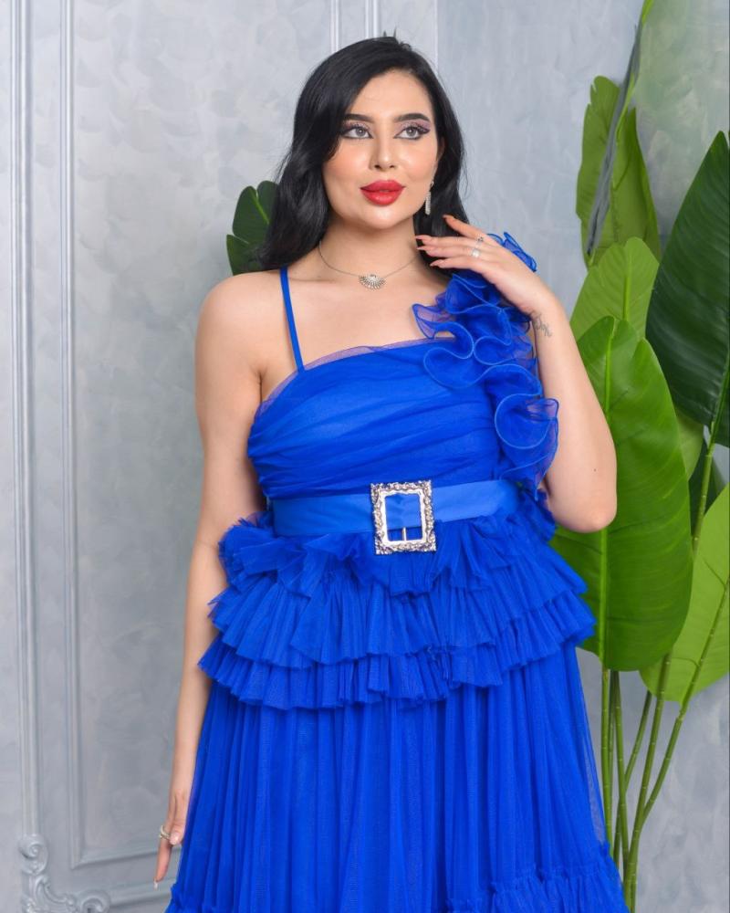 فستان أنيق بتصميم فاخر وناعم، مستوحى من جمال السحاب وأناقة الأميرات. مصنوع من قماش التول الخفيف الطبقي الذي ينسدل بنعومة ليمنحك مظهرًا راقيًا وفخمًا.