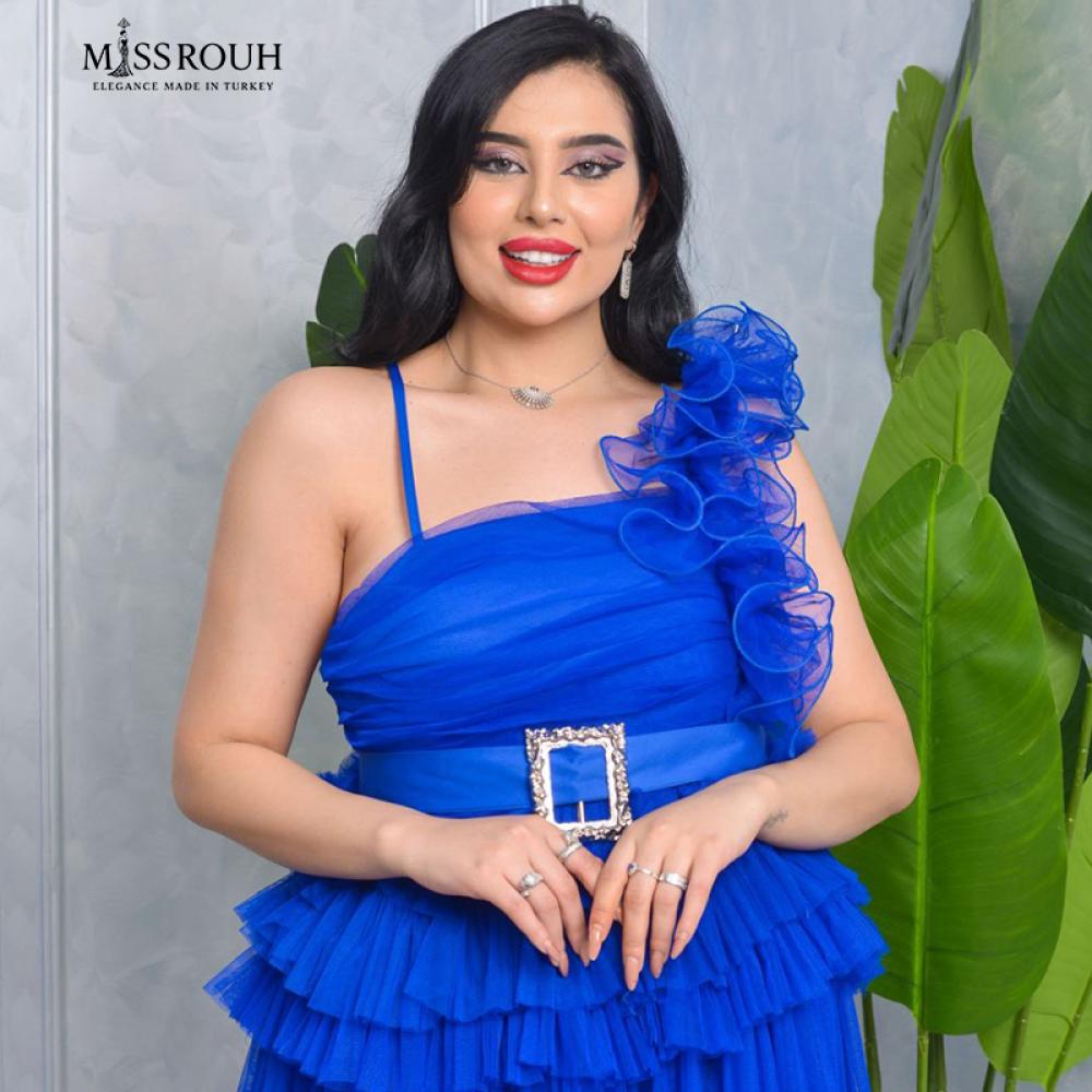 قصة الكتف الواحد المزيّنة بطبقات تول منفوشة تضيف لمسة عصرية.