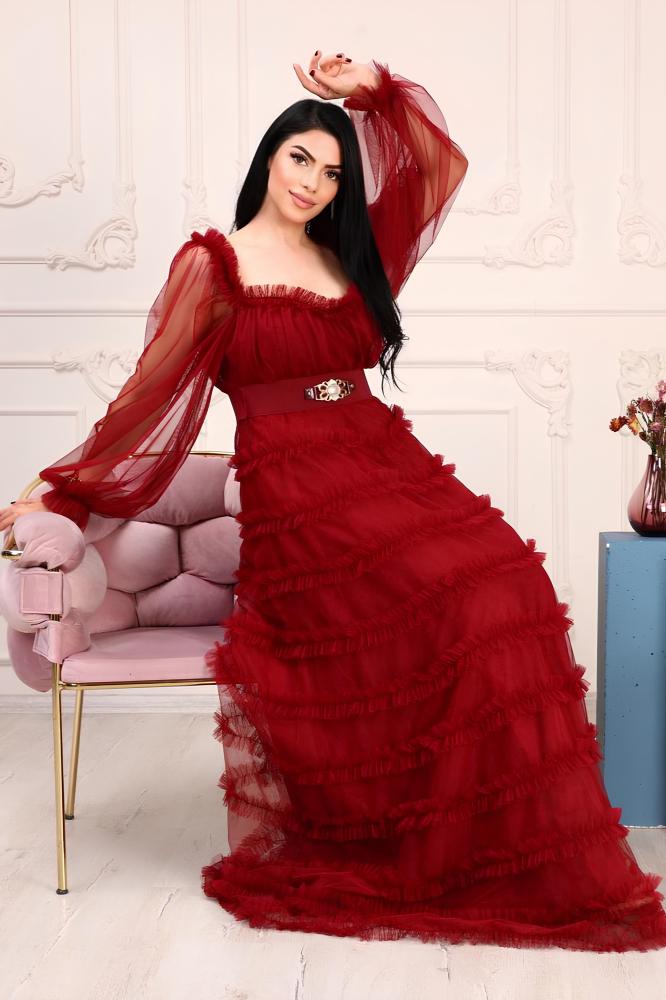 فستان موج البحر عنابي