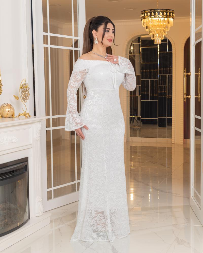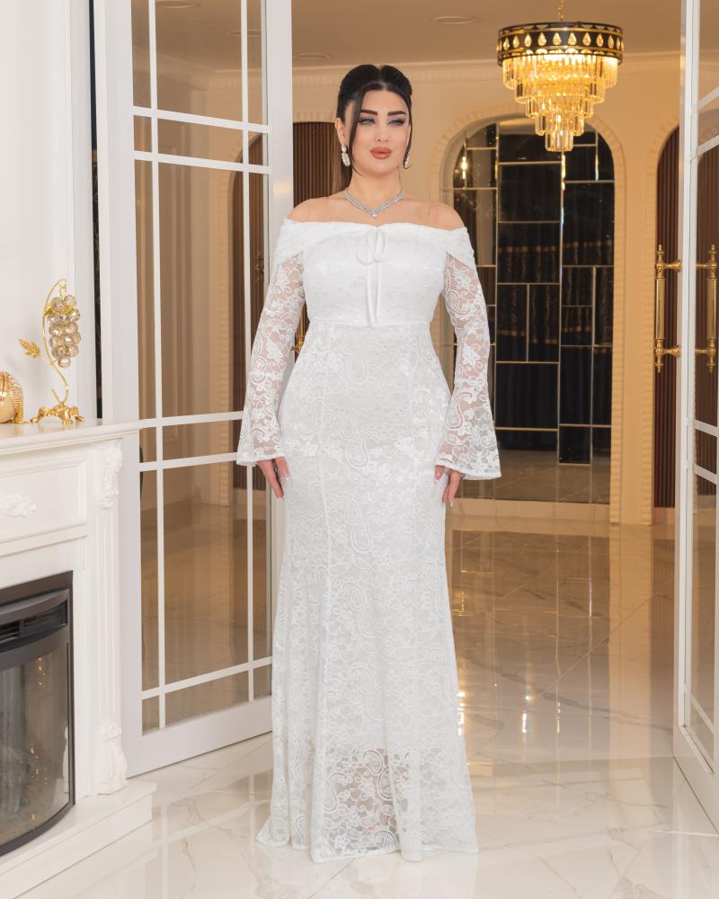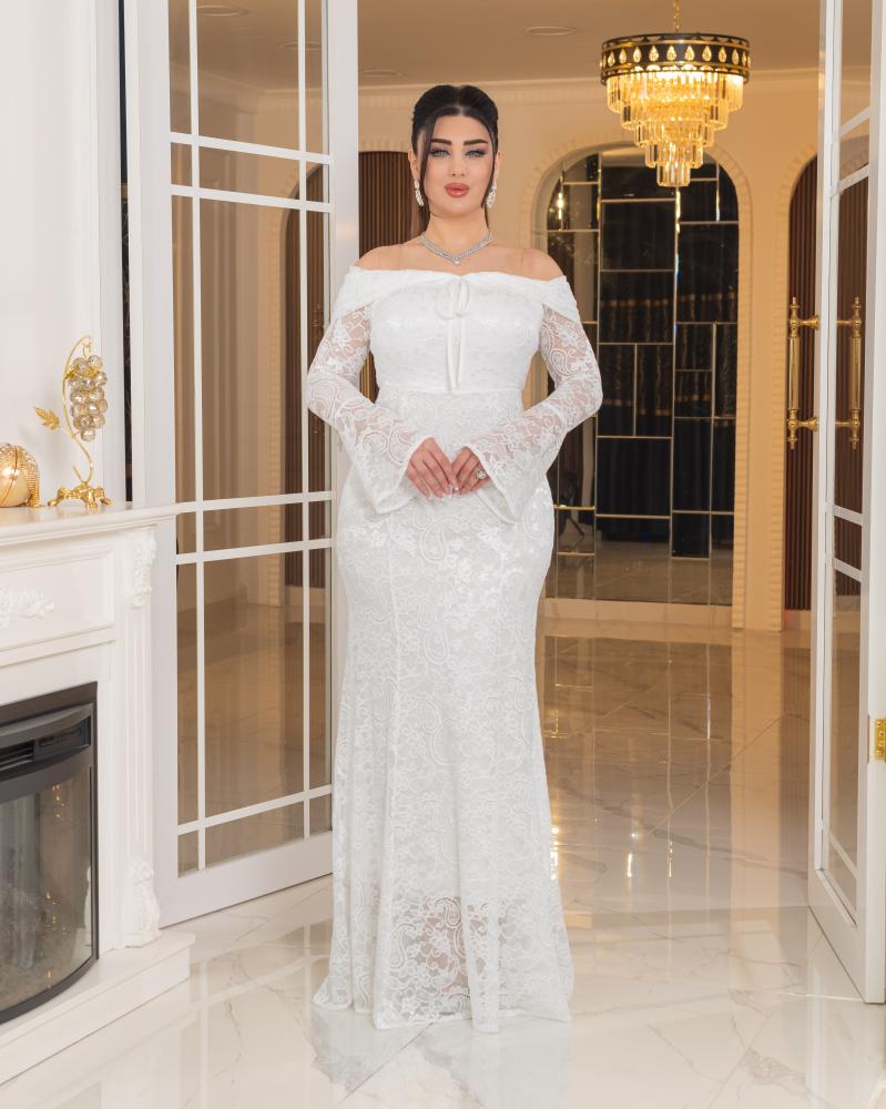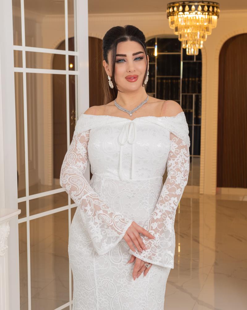 استمتعي بإطلالة راقية تأسر القلوب مع هذا الفستان الفاخر المصمم بدقة ليبرز أنوثتك بأناقة لا تضاهى. يتميز بقصة ضيقة تعانق القوام برقي، مع أكمام شفافة من الدانتيل الفاخر تضفي لمسة من الغموض والجاذبية. يكتمل التصميم بياقة مكشوفة تنبض بالرومانسية، مزينة بربطة ناعمة تضيف تفصيلاً أنثويًا ساحرًا. فستان مثالي للمناسبات الفاخرة، حيث يجمع بين الفخامة والكلاسيكية في إطلالة لا تُنسى.