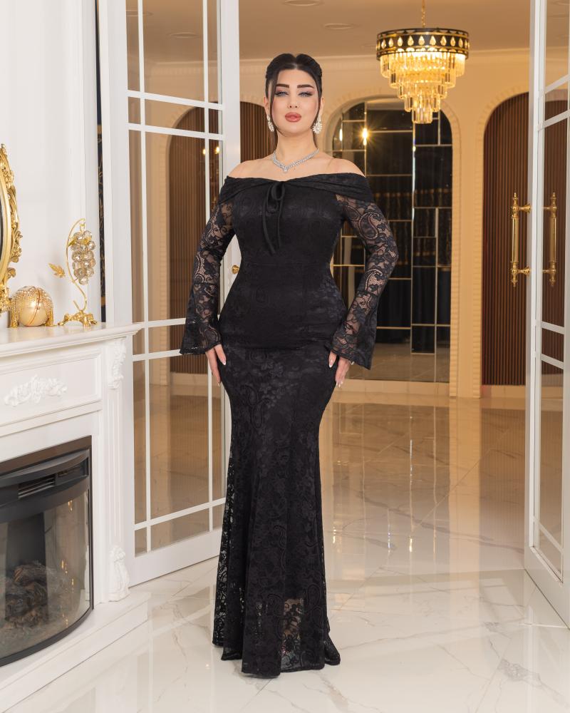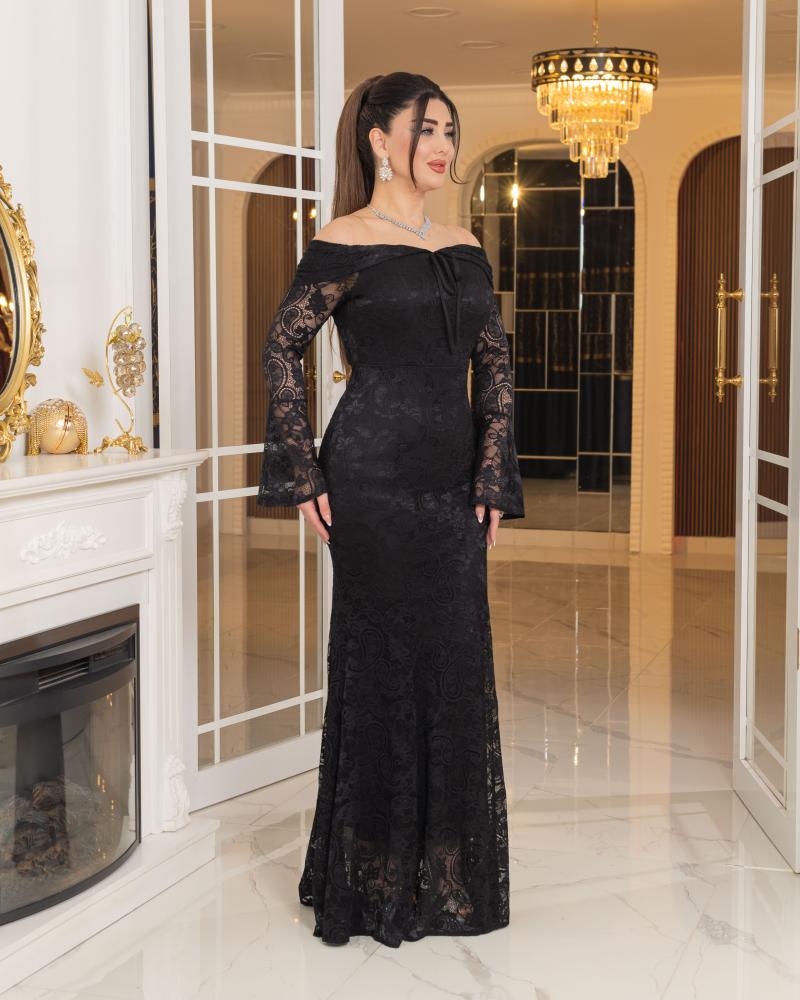 استمتعي بإطلالة راقية تأسر القلوب مع هذا الفستان الفاخر المصمم بدقة ليبرز أنوثتك بأناقة لا تضاهى. يتميز بقصة ضيقة تعانق القوام برقي، مع أكمام شفافة من الدانتيل الفاخر تضفي لمسة من الغموض والجاذبية. يكتمل التصميم بياقة مكشوفة تنبض بالرومانسية، مزينة بربطة ناعمة تضيف تفصيلاً أنثويًا ساحرًا. فستان مثالي للمناسبات الفاخرة، حيث يجمع بين الفخامة والكلاسيكية في إطلالة لا تُنسى.