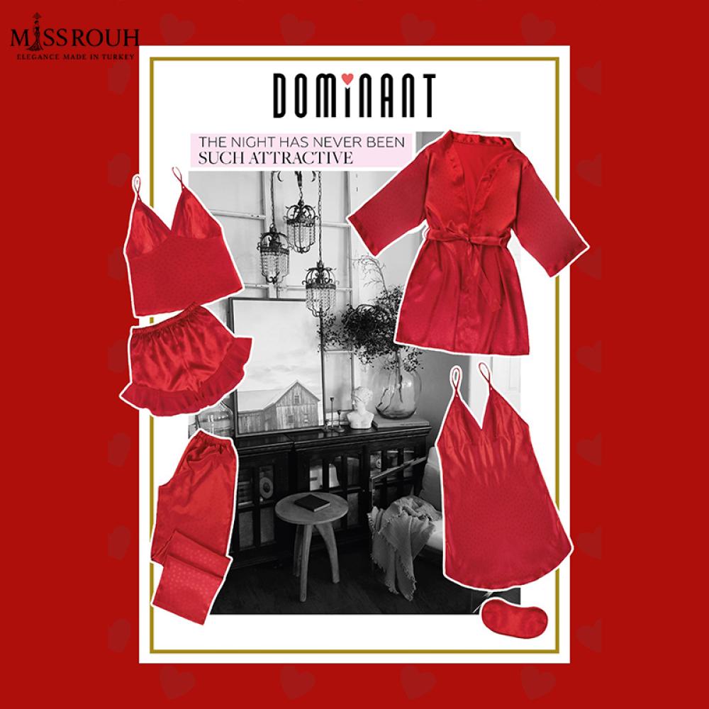 مجموعة نوم أنثوية أنيقة مصنوعة من الساتان الفاخر باللون الأحمر الجذاب، تمنحك الراحة والأنوثة في كل لحظة. تتضمن المجموعة: